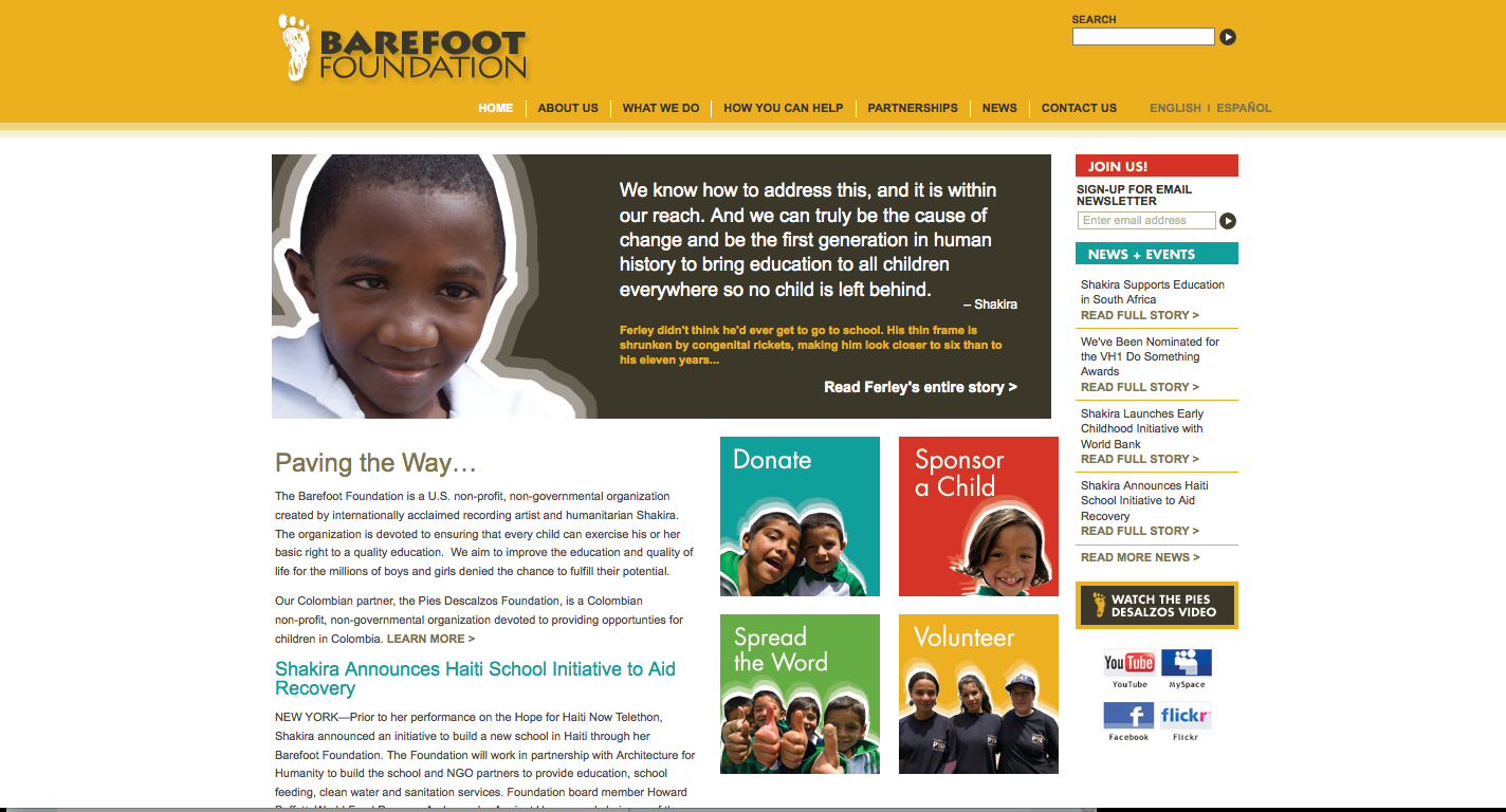 By 2008, Shakira launched the US-based Barefoot Foundation, which “works to ensure that every child can exercise his or her right to a quality education.” (Source)