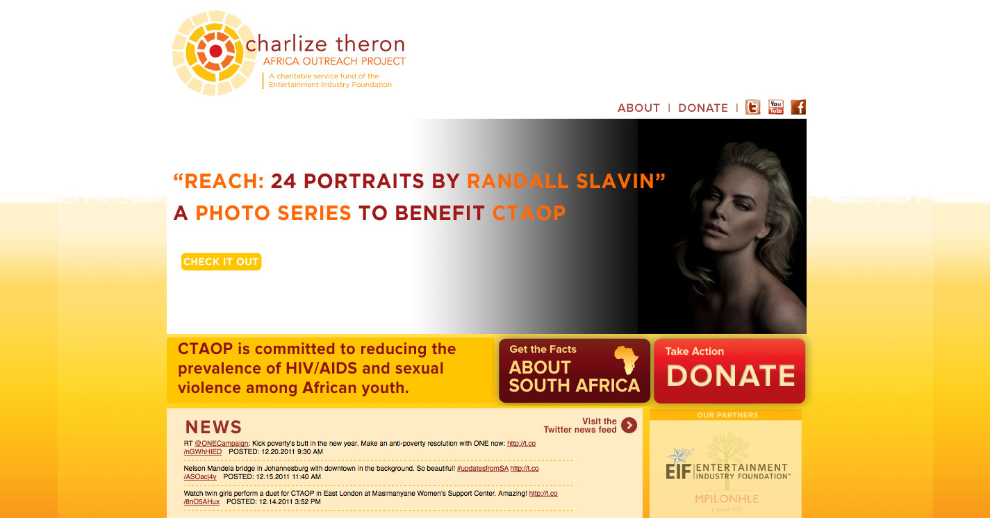 While many of you think of her latest film, Young Adult, when you hear the name Charlize Theron, or wonder about her love life, Charlize is obsessing over something way more important and way less trivial – victims of HIV/AIDS in her homeland. A native of Africa’s country of South Africa, it was in 2007 that she founded The Charlize Theron Africa Outreach Project (CTAOP), in affiliation with the Entertainment Industry Foundation (EIF). The CTAOP is “committed to reducing the prevalence of HIV/AIDS and sexual violence among African youth by supporting and collaborating with organizations that provide preventive education.”